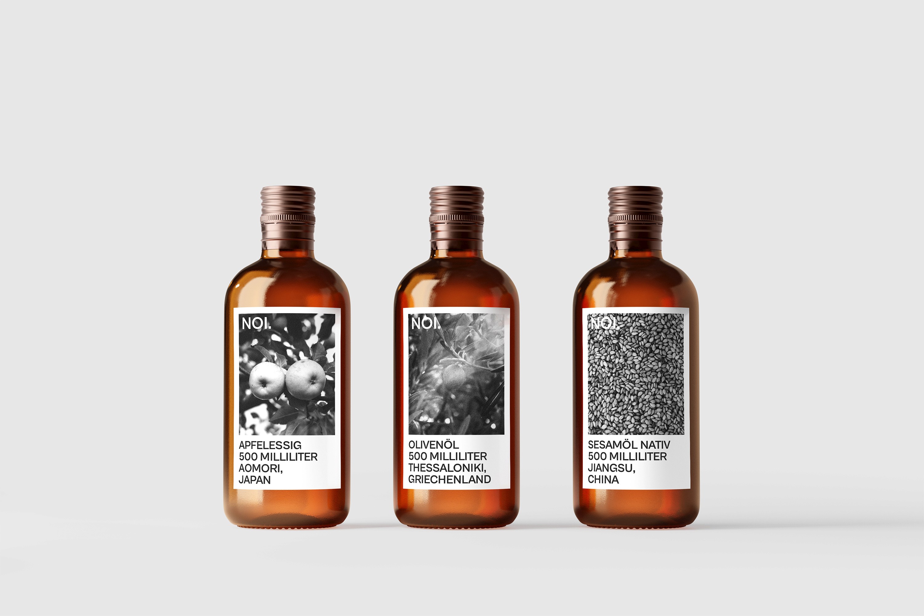 The course “Good Goods!” in the summer semester of 2024 set the task of developing a visual identity for a high-end food producer specializing in essential foods and ingredients. Originally, the project was meant to create a new visual identity for the food producer “Vanilla Concierge.” Unfortunately, the client withdrew within the first few weeks, which led to the creation of the fictional brand “NOI FOODS.” For this brand, I designed a potential packaging concept aimed at positioning it as a provider of premium kitchen essentials. The centerpiece of the packaging is the label, which features a flexible layout designed to work across various formats—from a 1000ml olive oil canister to a 50g cinnamon package.